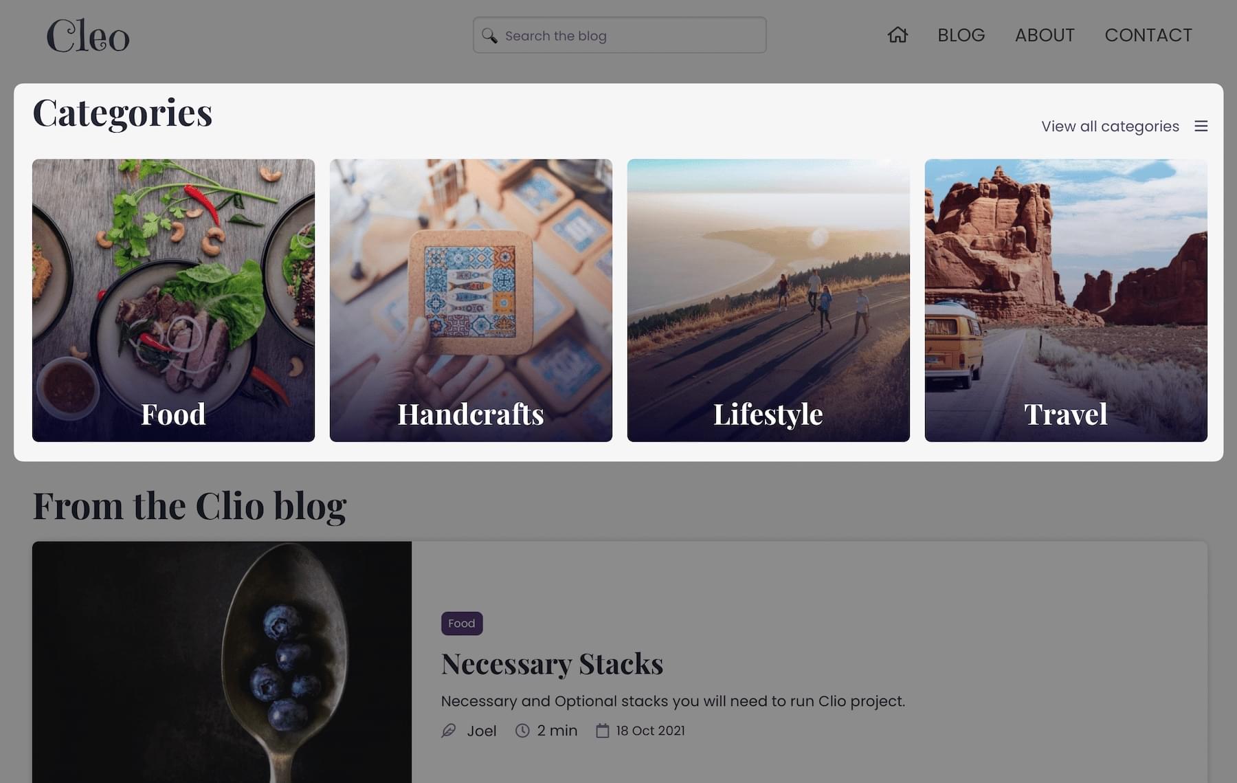 Assign an image to each of your blog category. They will look great on your blog page! You can choose to display only the title of the category or remove this section completly.